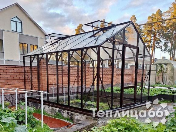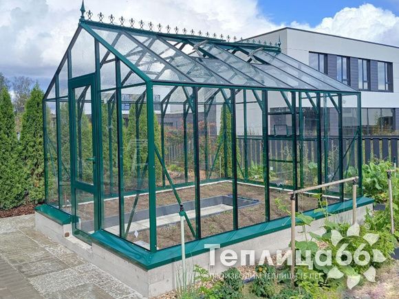 Это теплица премиум класса, изготовленная из поликарбоната, собранная на алюминиевом каркасе, которая пользуется высоким спросом на рынке.